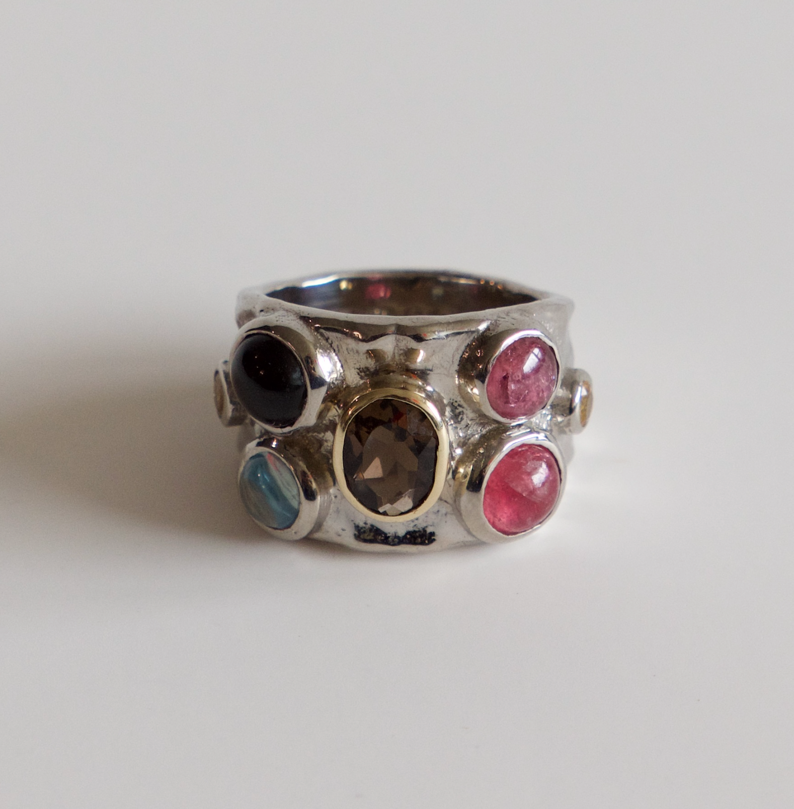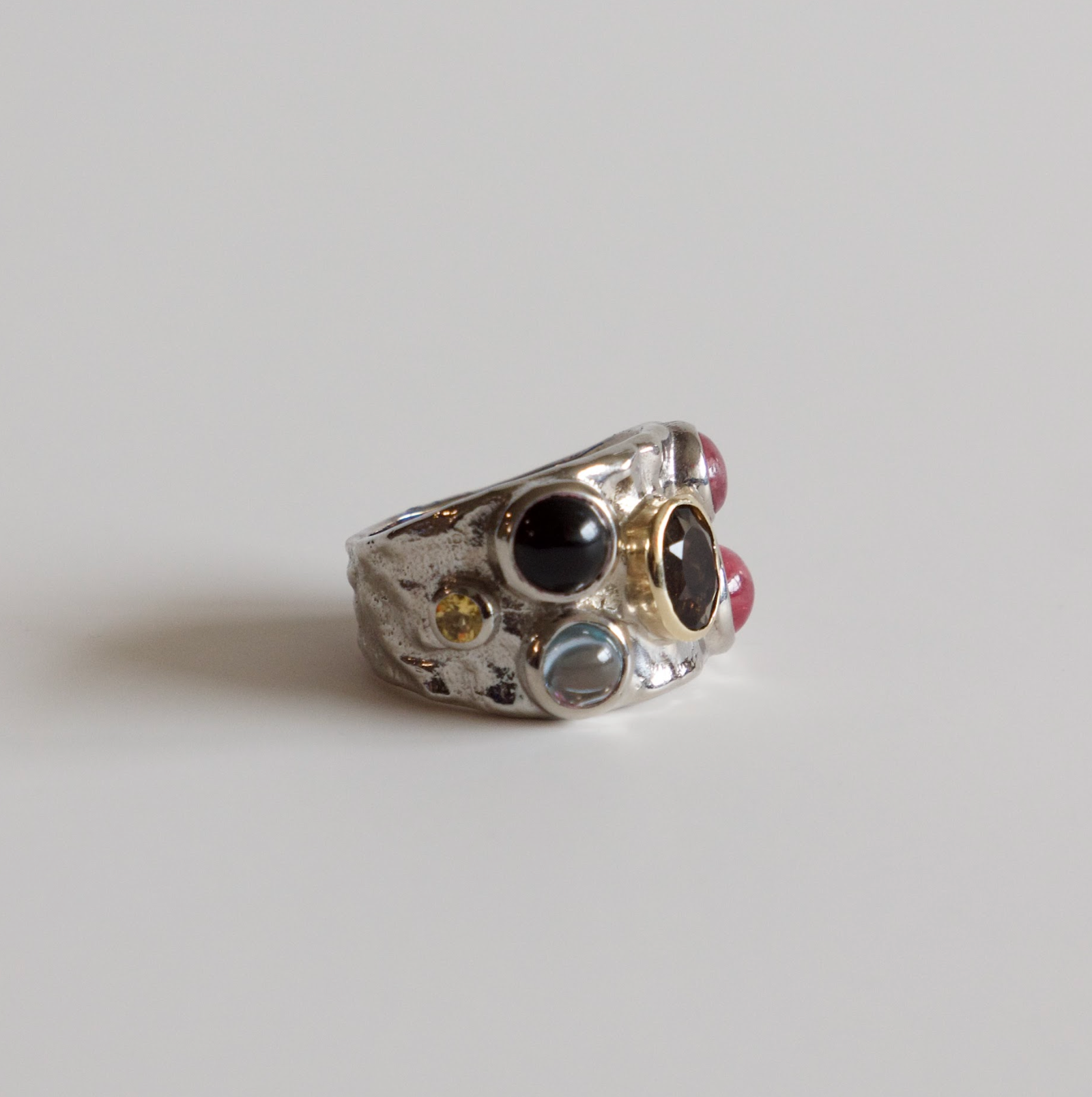 Smoky quartz, black onyx, blue topaz, tourmaline, & citrine